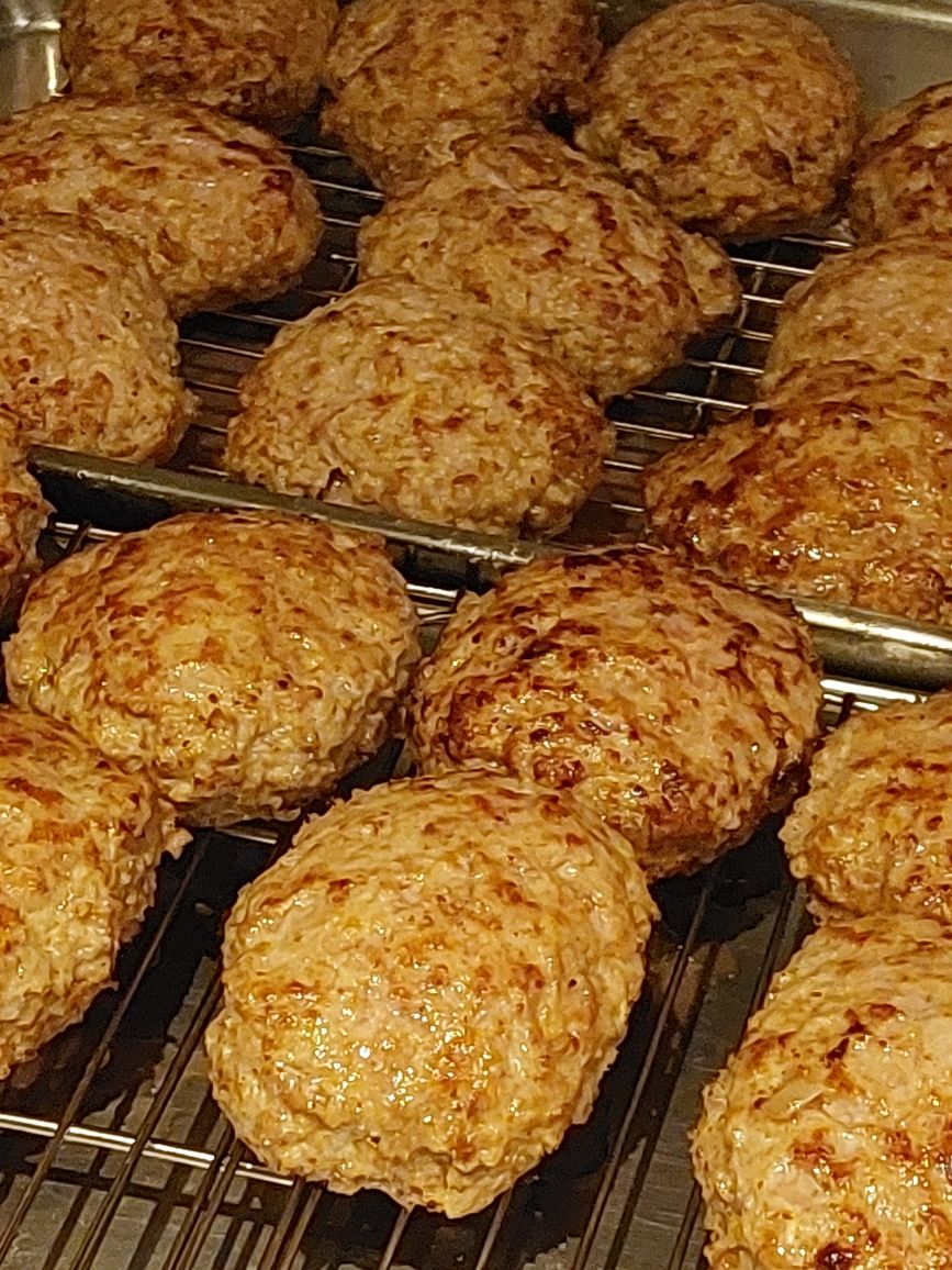 ラードを吸って膨らんだ柔らかハンバーグを焼き上げました。