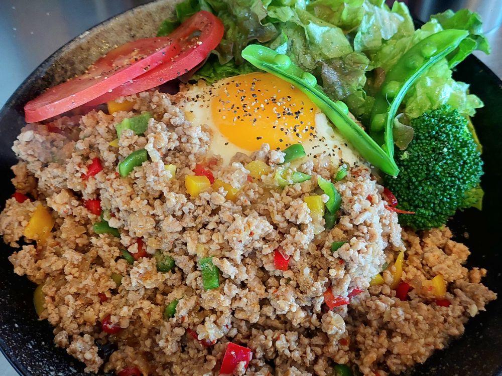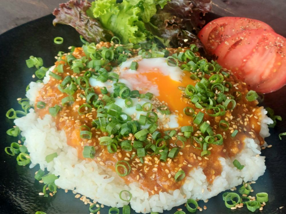 プルコギ味のチキンスライスにたまごサラダがどどーんと乗った一品です。